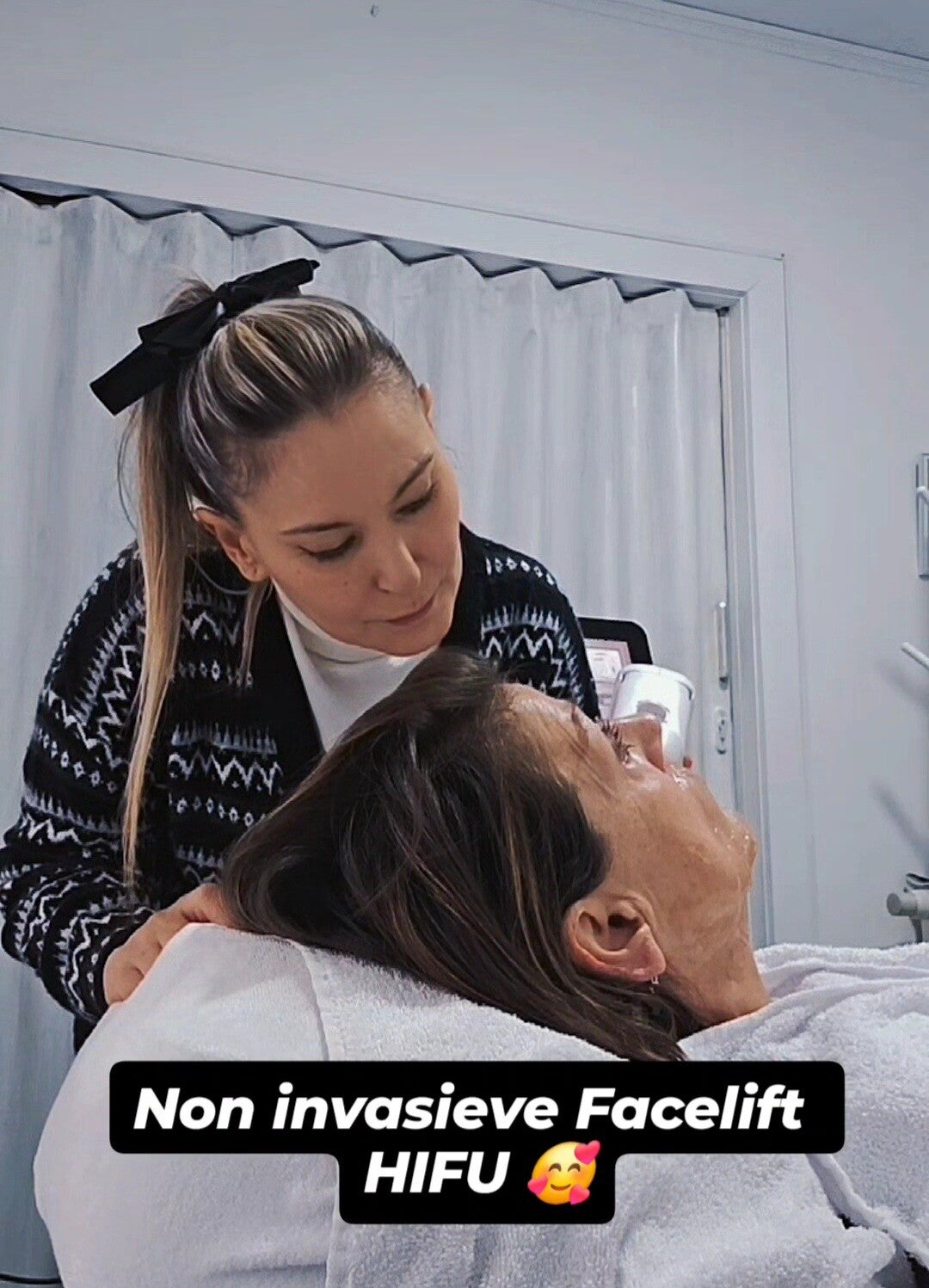 Onze HIFU Facelift is een veilige en niet-invasieve behandeling die de huid van binnenuit lift en verstevigt. Met behulp van gerichte ultrasone energie wordt het collageen diep in de huidlagen geactiveerd, wat zorgt voor een zichtbaar strakkere en jongere huid – zonder downtime of injecties.